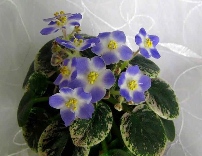 Простая пурпурная звезда с белым звездообразным центром; сердцевидная бело-зеленая листва. Мини. Цветения этого сорта ждала два с половиной года и наконец то!!!