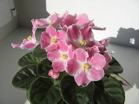 Розеточка очень компактная. Все 3 цветочка окрашены по разному :D Самый последний полностью белый распустился. :magnifier: Мне нравится! :)