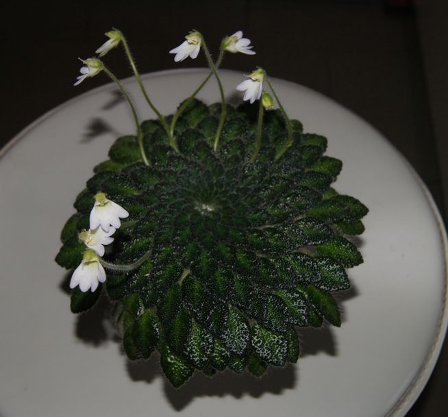 Розетка очень послушная, сама формирует листик к листику и по кругу. Сорт теперь носит название crypta. Начало цветения, в этом году не так обильно.