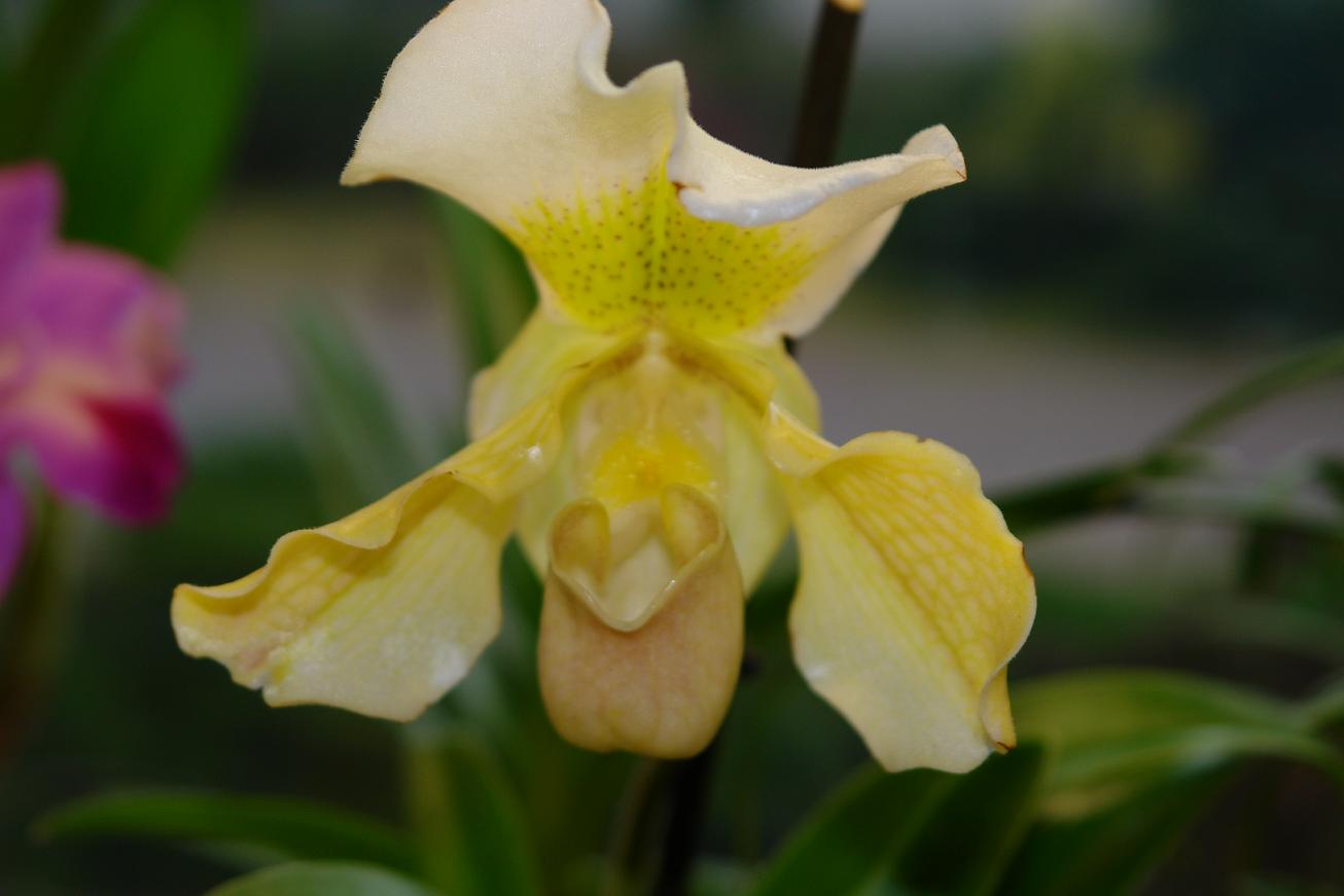 Vzade cvetjot u menja gibridnyi bashmachok
