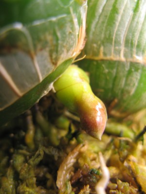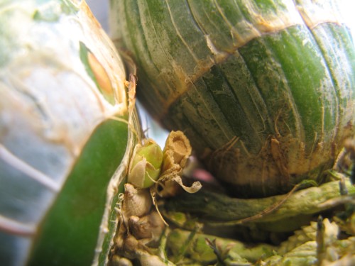 Появилась у меня в этом сезоне новая орхидея. Любопытнейшее растение. Должна уже спать, но не спит. Листики зеленые до сих пор. И вот такие почки проклюнулись. Интересно цветоносы это или новые ростики ?  Цвести к весне должна по правилам.