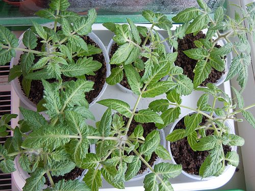 Уже зацветают помидорки.