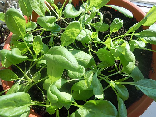 А у меня шпинат на балконе. Сочненький такой.
