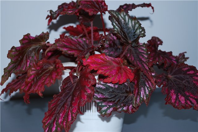 Наташа, очень красивая листва. Надо мне подумать до весны. Может быть в бухгалтерии окно освежить такой же яркой. У низ бегония растёт простая с зелёными листьями и вроде не плохо растёт. Ей хорошо бы пару подобрать. А как она в уходе? Тоже не любит что бы крутили - переставляли и летом воды попить любит. Так?