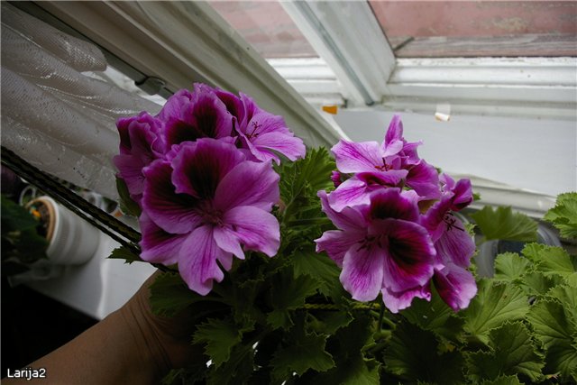 Зашла к подруге, взяла отросток.  У неё такааая лошадка выросла за год!  Но цветёт не переставая! А листики у неё обычной зональной пеларгонии, с запахом.