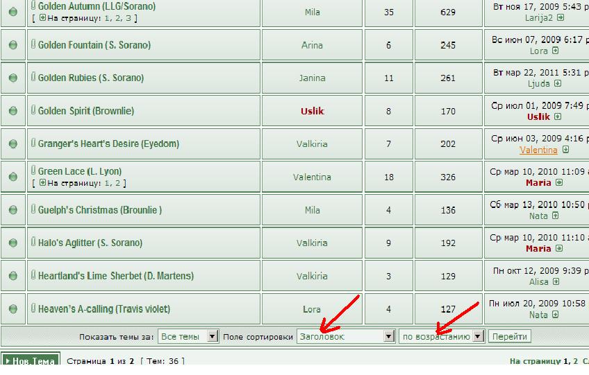 А нельзя ли сделать так, чтобы внутри раздела темы были отсортированы по алфавиту? Например, заходим в раздел "Сенполии" - "Стандартные сорта зарубежной селекции" - "A-B-C-D-E". Там три страницы, и сорта располагаются в порядке добавления темы. Мне кажется, что расположение по алфавиту сделало бы просмотр и поиск удобнее.