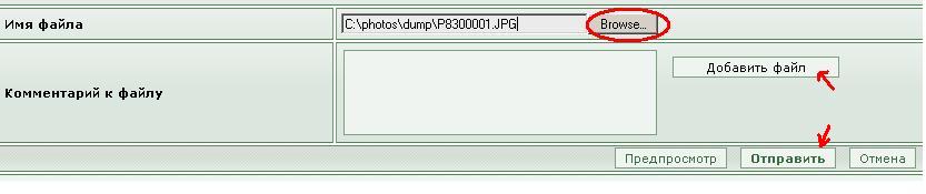 3. Нажимаете кнопку "Browse", находите фото на диске. 4. Если хотите вставить только одно фото, то нажимаете "Добавить файл" и "Отправить" или только "Отправить"