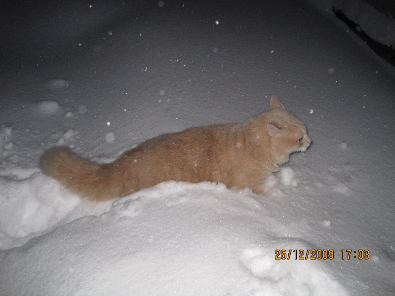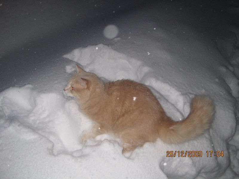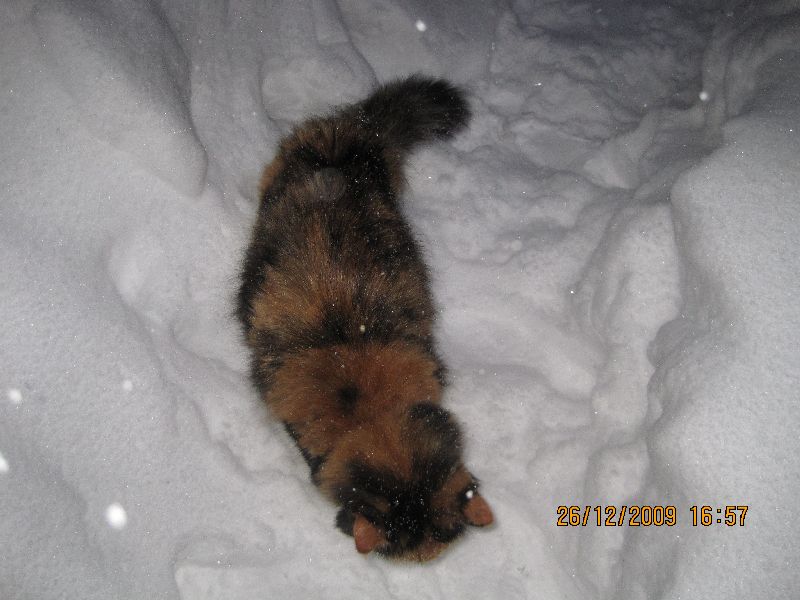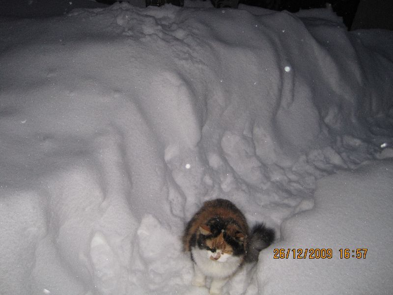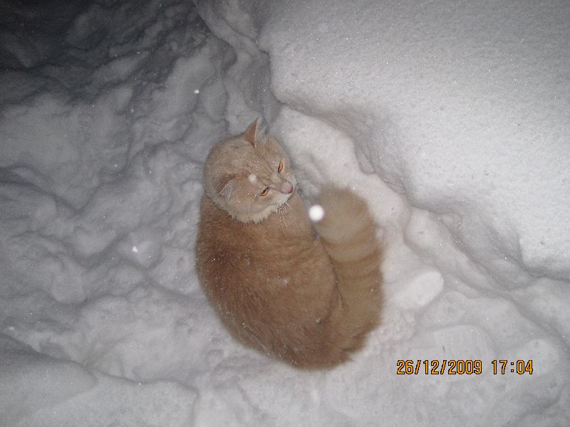 А сбежать было просто некуда - снежные сугробы больше метра намело. Кот пытался протоптать "тропу", но увяз, провалился в рыхлый снег.