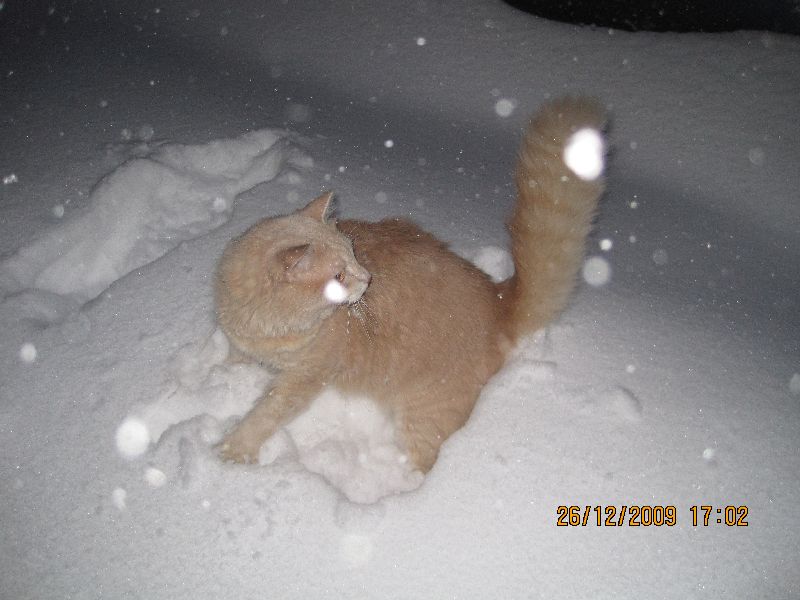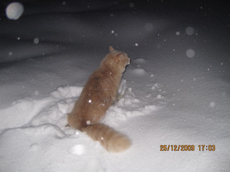 Снег для кошки не в новинку, раньше она гуляла на балконе.