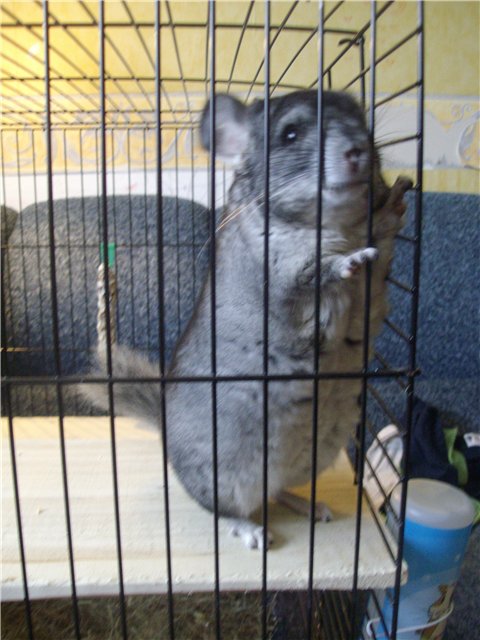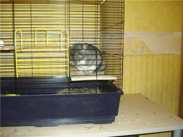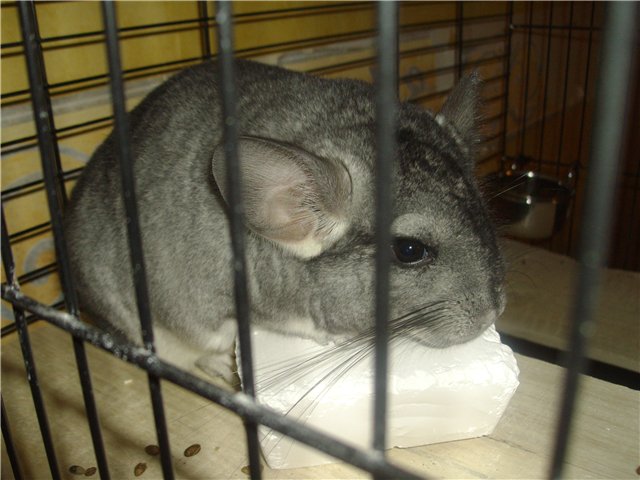 Лора,подружку не хочу.Я думаю ,что скоро, мне придётся за ним убирать,т.к. у дочери будут другие интересы,а мелкий пока его только дразнит. Решили ему купить металическую миску,т.к. пластмассовую он переворачивает и таскает везде,а ещё купили здоровый камень для зубов и новую бутылочку для воды,старую он погрыз и она потекла.Повесили камень,миску и что...он перевернул миску,сгрыз наклейку на дне миски,снял кольцо и начал его таскать везде,а когда пытались отнять кольцо,то он не давал его и тащил на себя.Мы падали от смеха.Муж привязал миску к решётке ,шинш пытался перегрызть держатели,но пока ему это неудалось.Утром встала на работу,а камень лежит на дне клетки,он перегрыз держатель.Теперь сидит на камне. Я положила ему камень на полочку и он решил его использовать вместо подушки.