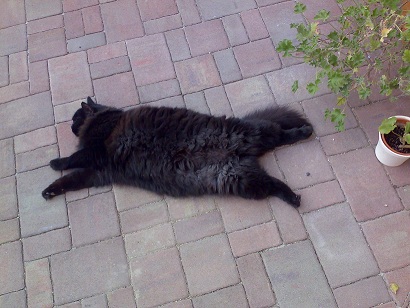 Пузико мы таскаем гордо и важно! И оно нам совсем-совсем не мешает! Прыгать и бегать мы и с ним можем достаточно проворно, что б хозяйка не догнала, не поймала и не затискала)))))) А кругломорденькая потому что из породы британско-шотландских кошек, им по должности положено быть такими крупными и щекастыми) Одно слово - Вискас!