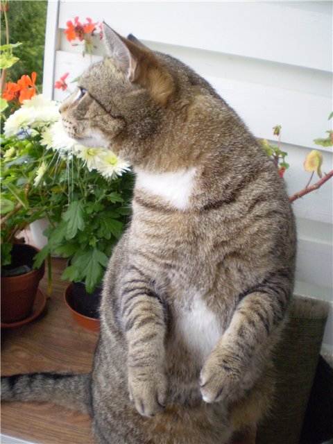 Мой звереныш самый обычный дворянчик - не от слова "дворянин", а от слова "двор". Но ведет себя как самый настоящий дворянин, чуть что лапой. Большой любитель компьютера: модем просто обожает - любит на нем поспать...