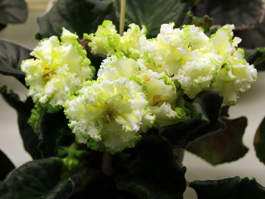 Последняя похожа на ЛЕ-Бриллиант Тиффани. Смотрю, что все еще тянет на зеленоватых.... А у меня в последнее время все наоборот - из новых сортов ничего не нравится. Все кажется где то уже виданное и похожее на то что было. Запоминающихся сортов не нахожу. Вот и хочу завести РС-Аквамарин . Но есть всетаки несколько хотелок из новых и у меня АВ-Экстаз (фото с сайта фиалковода) ЛЕ-Золото Нибелунгов (фото с выствки в Доме фиалок)