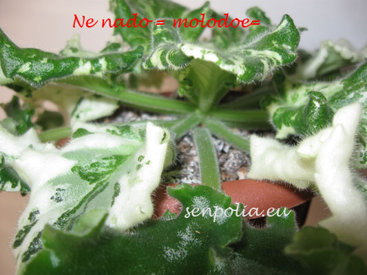 Корректирую по мере возможности Макушку с мелкими листьями и 1-2 ряда взрослых молодых листьев, примерно так я оставляю.