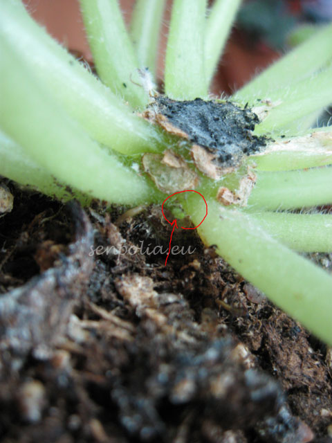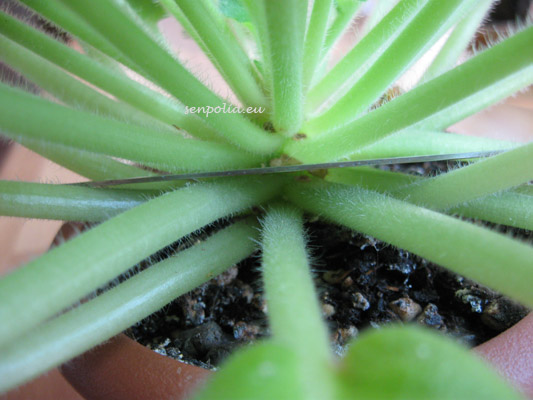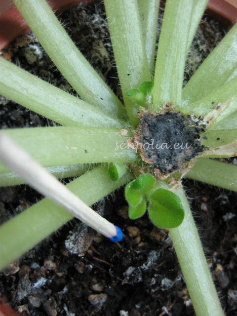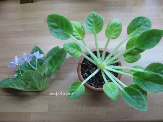 PS: где фиалка в горшке после отделения головы. Я убрал несколько листьев что бы лучше было вам видно какой ствол должен остаться в земле.