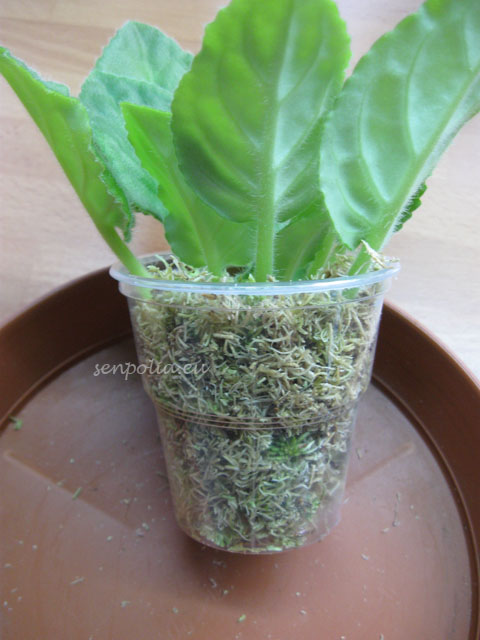 голову которую обрезали то же сажаем. Практически получилась обновление розетки. Места среза можно обработать. Я этого не делал. У обрезанной головы уберите несколько листьев. Так что бы был оголенный участок примерно 0,5 ml. Больше не надо листья это питательный запас энергии для цветка. Чем больше уберете листвы тем больше ослабите растения. Сажаем голову в нарезанный мох. Но предварительно я мох заливаю кипятком на 5 минут. Мох принесен из леса могут быть плесневые споры грибов. А это может вызвать гниения у растения. Мох не должен быть сильно мокрый. Вода здесь не нужно. Мох нужно отжать. Должен быть влажный на ощупь но не мокрый. Посуду возьмите не большую и желательно прозрачную. Можно будет видеть что происходит с корнями. И корни хорошо растут если есть доступ света. Посмотрите например у деток которые растут на окне и попадает свет. Корни с той стороны где солнце больше и лучше развиты.