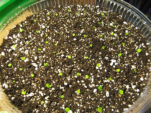 Взошли семена На некоторых уже заметна пестролистность. О сложностях опыления зеленоцветковых сортов легенды ходят. Подтвердить не могу. Опыление состоялось легко и на 5-6 день после опыления уже можно сказать, что будет коробочка. Раз в месяц буду показывтаь как подросли малыши. По мне так зацвели бы скорее. Но надо набраться терпения. Цель скрещивания: Уменьшение розетки с сохранением пестролистности. И хотелось бы цветок поярче, а вод длительность цветения мамы сохранить непременно и значит должна быть сохранена зеленая кайма. А вообще мечтаю о Фролике в темно-бордовое фентази. Итак осталось годик подождать! Всходов штук 80.