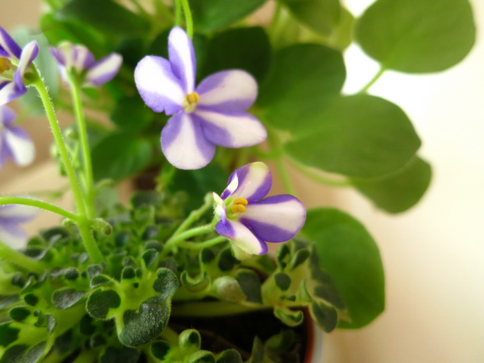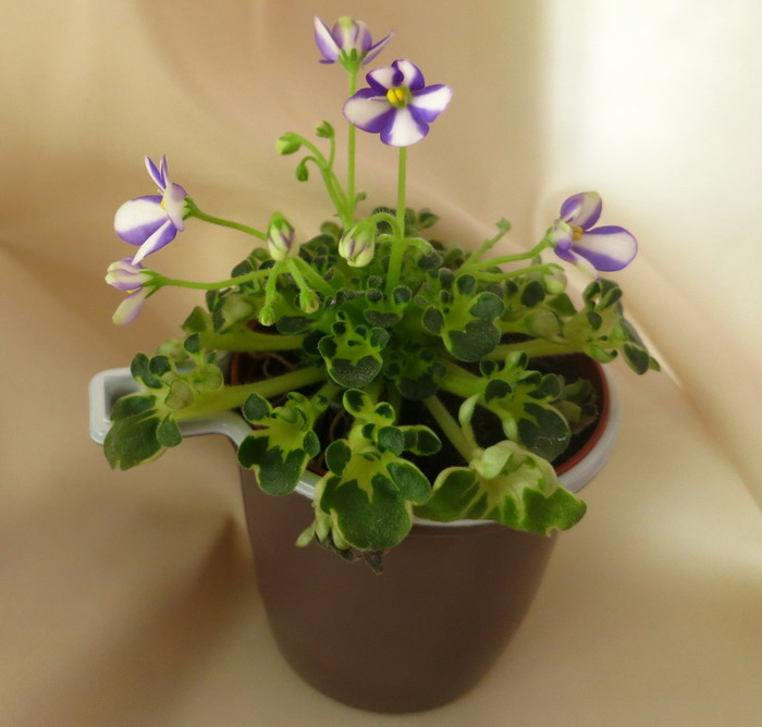 Синий колокольчик с белой полосой по центру и вариабельно зелеными кончиками лепестков.. Ярко-зеленая гёрл-листва с крупными фестонами-ушками! Мини. Спорт Lullaby У меня оказался тугодумом: с начала приобретения крохотного пасынка до начала цветения прошло почти 2 года Рядом с Pony Ride