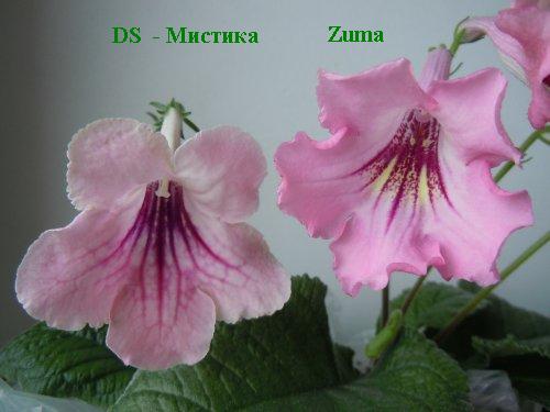 Zuma цветет красивее Мистики за счет волнистого края и полосок в горле.