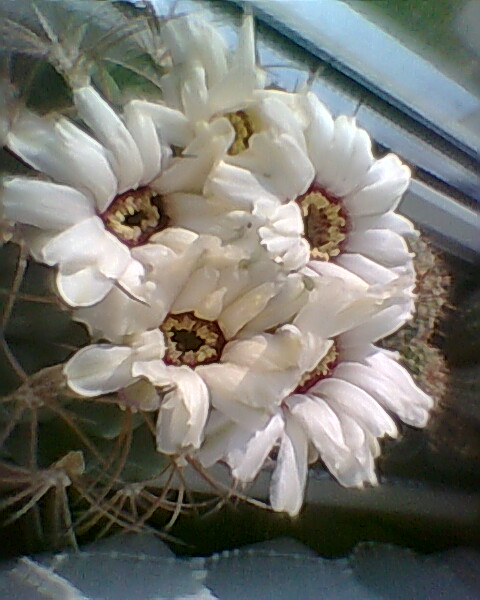 Добавлю еще одно фото - это тот же кактус с базы - что меня удивило, что он сам огромный, и при легкой зимовке так красиво зацвел - цветы огромные.