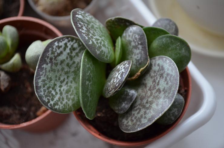 :D c покупочкой суккулента. Адромисхус Семейство Толстянковые . Уход как за денежным деревом. Много солнца летом, зимой период покоя, редкий полив и прохладная зимовка. Размножается листиками и отростками. Кормить кактусовым удобрением с весны до осени. Если коротко, то вот так. Было у меня такое чудо в суккулентное хобби время, но я залила его :(