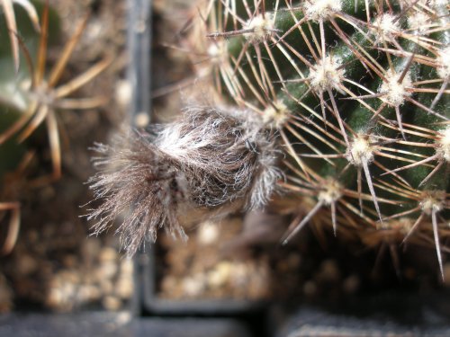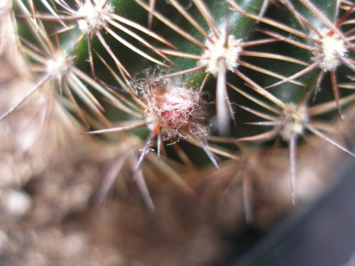 Малышка Mammillaria elongata,первое цветение :bravo: Цветочек меньше 1 см, поэтому не очень чётко :oops: