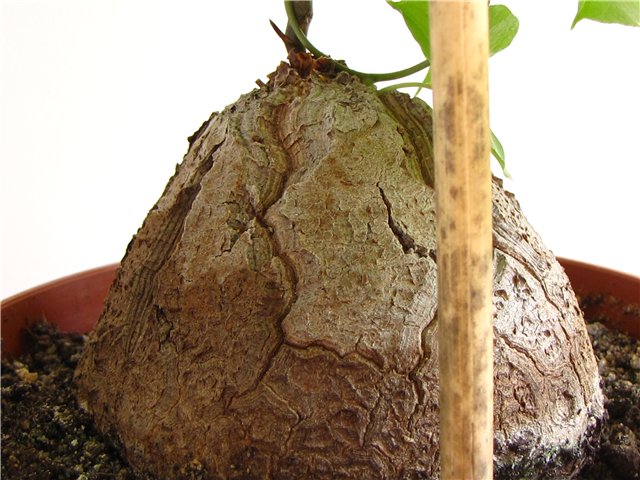 А вот и сам каудекс. Уже видно начало формирования характерного вида самого каудекса: