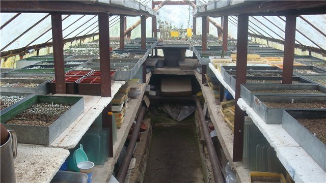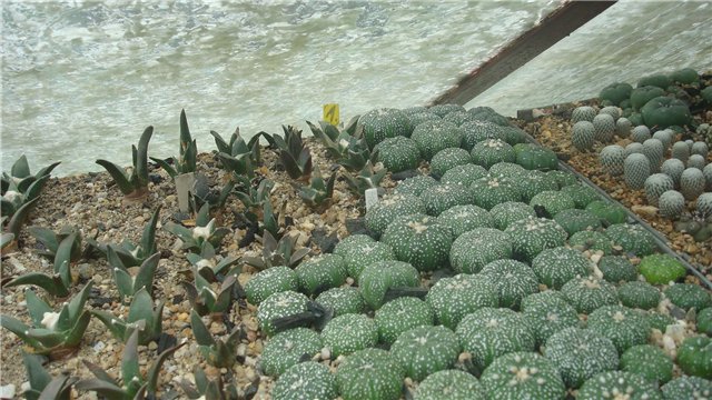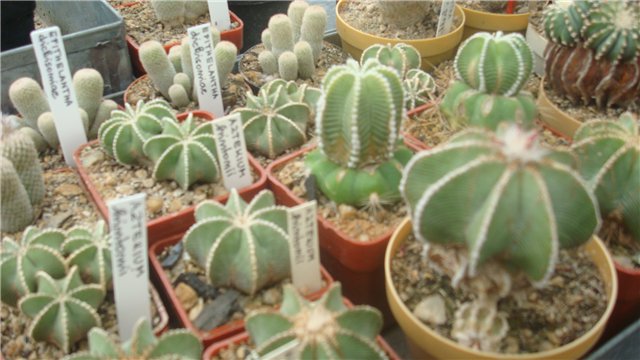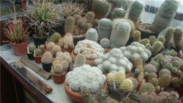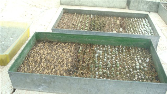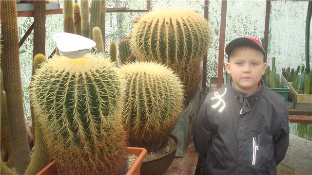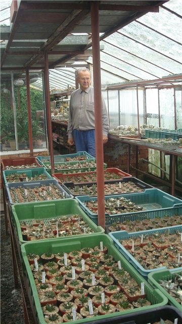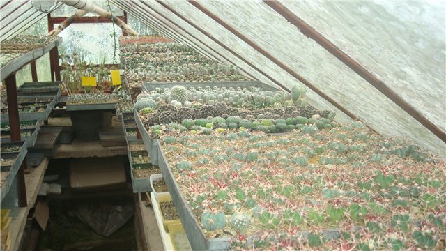Все кактусы выращены из семян. Две теплицы - для размножения кактусов. Выращивает около 70 видов.