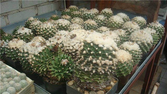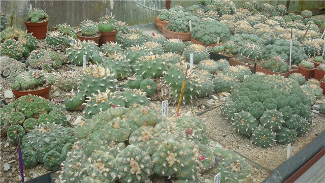 А у Карела этих лофофор - что огурцов у нас на грядках, и других редкостей и просто великолепных экземпляров-Aztekium hintonii, Astrophytum asterias Superkabuto, Astrophytum myriostigma var. tricostatum, Echinocactus horizonthalonius, Mammillaria herrerae, Mammillaria napina, Mammillaria theresae, Pelecyphora pseudopectinata.