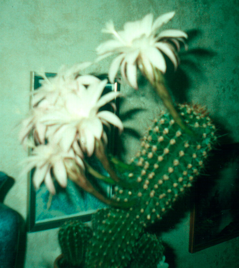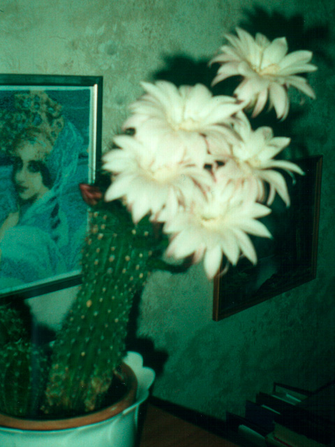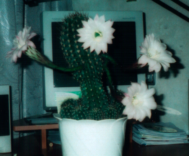 Вот так когда-то цвели мои эхинопсисы. Жаль фото некачественное, снимали давно простой "мыльницей".