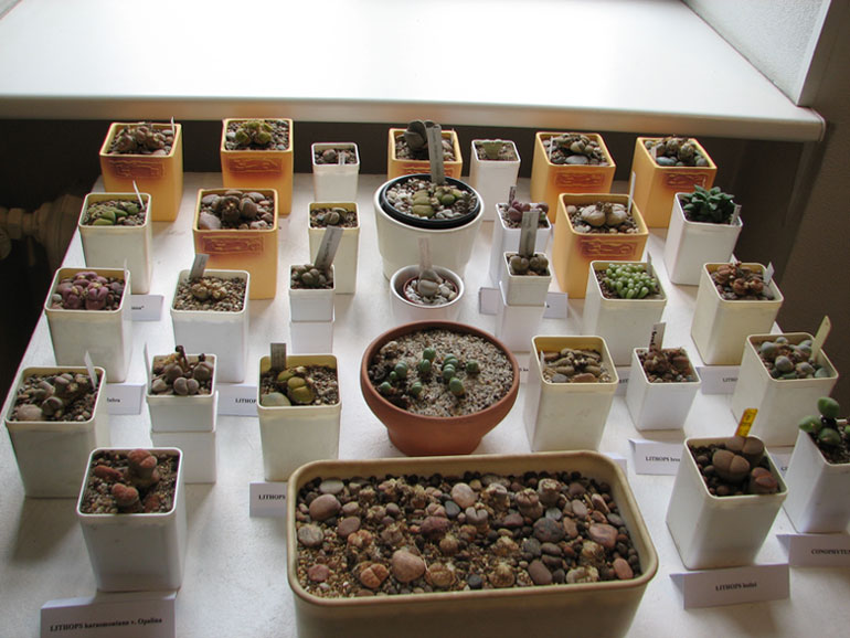 Я сфоткала и другие кактусы крупным планом - могу потом фото обработать выставить, если интересно. И литопсы крупным планом фоткала - но без цветов они не особо различимы. А квадратные горшочки имеют шикарное свойство экономии места.