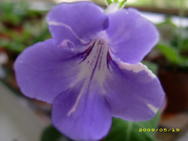 Минятюрный Bristol‘s Hanky Panky /Robinson/– Dark blue-purple, bright yellow throat and lip, distinctive dark purple stripes on upper throat. (Rob's Violets)