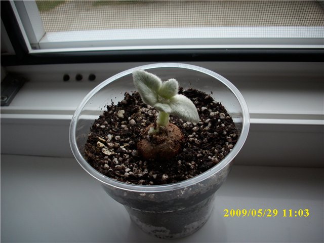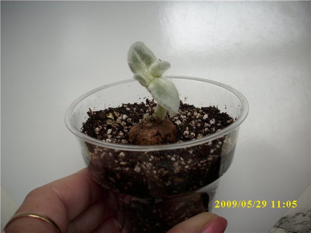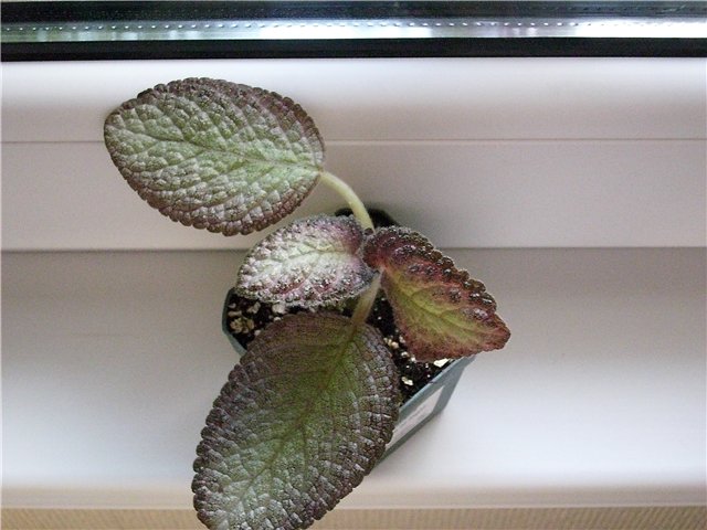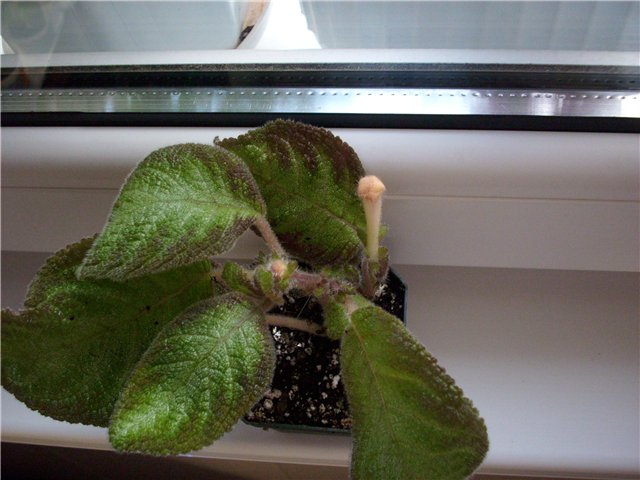 Спасибо Ларисе, просветила, как называется это растение. Живет у меня дичком: когда полью, когда забуду. Но цветет и выпустила новый побег. Очень интересные листья, чистый шелк.