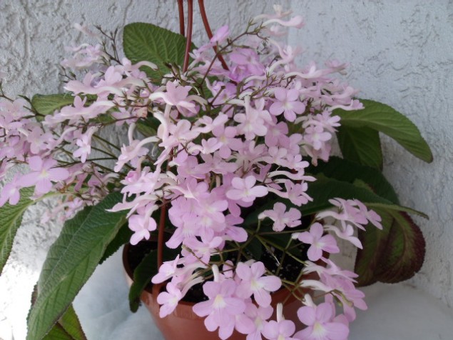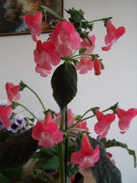 Смитианта замечательная! Жду когда у меня зацветут, пока только из земли вылезли на пару сантиметров, а у моей дарёной, первый цветок открылся, да случайно его оторвала, зацепился да опору от коллерии...  Ждёмс следующего бутона. Надо сказать, что у смитиант листья красивые и приятные на ощуп. Как мне показалось, что у коллерий больше разнообразия в окраске листвы. Кстати, у меня пополнение - две смитианты Early Spring и Zorro.