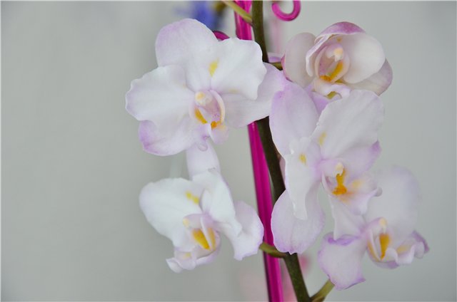 В природе они растут и цветут без палочек.. Прелесть орх в их свисающих цветоносах.. Тем более, что у этой орхи они не такие длинные.. Это в магазинах к палкам для удобства транспортировки приделывают из-за чего в общем цветок похож на искусственный.. Извиняюсь за занудство, но меня всегда тянуло к совершенству..