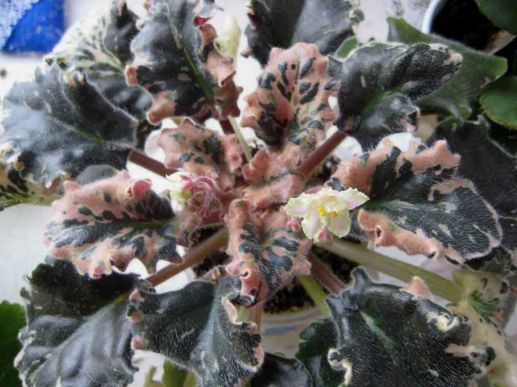 Розетка действительно красавица, особенно если закрыть глаза на покусаннык котиком листики, но вот цветочки :swoon: Никак не ожидала когда заказывала этот сорт, что цветочки у него будут микроскопическими, не знаю есть ли там сантиметр, неверное вряд ли. Красивые конечно но такие мелкие :magnifier: