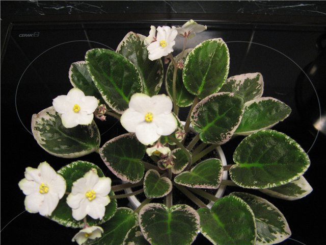Розетка вымахала большая, пестролистность на листьях красивая, а вот цветочки у меня не очень.