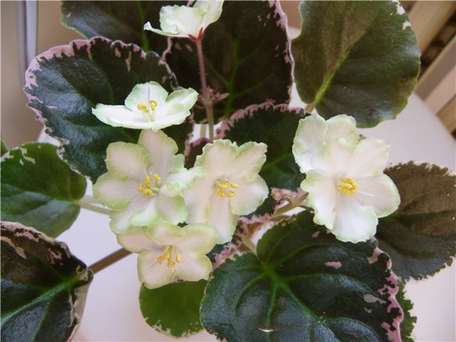 Полумахровые белые звезды с зеленой каймой. Пестролистник.