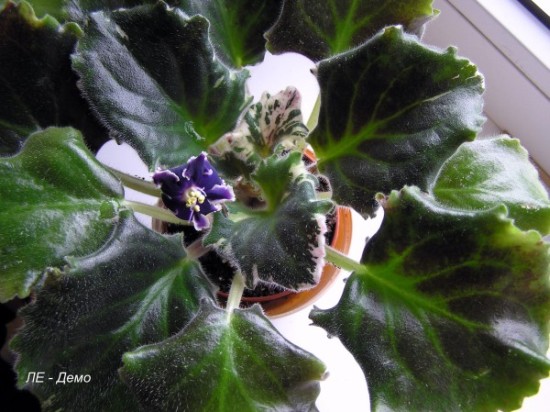 Не могу сказать что тоже доволен цветком. А хуже всего что сорт отсутствует в каталоге селекционера. Хотя цветок новый. И селекционер пишет = Темно-синие бархатистые цветы с почти черными кончиками лепестков= А у всех кончики белые или золотые. Как то непонятно. Форма бутона и правда вывернута назад. Букетного цветения нет. Розетка и правда большая и сделать с ней что то очень проблематично. По уходу и капризам похож Elizabeth. Цветок для любителей лиственных цветов так как будет цвести редко.