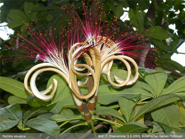 В интернете нашла фото цветения пахиры. Очень экзотический цветок.