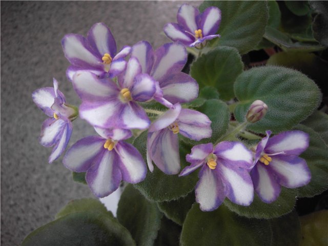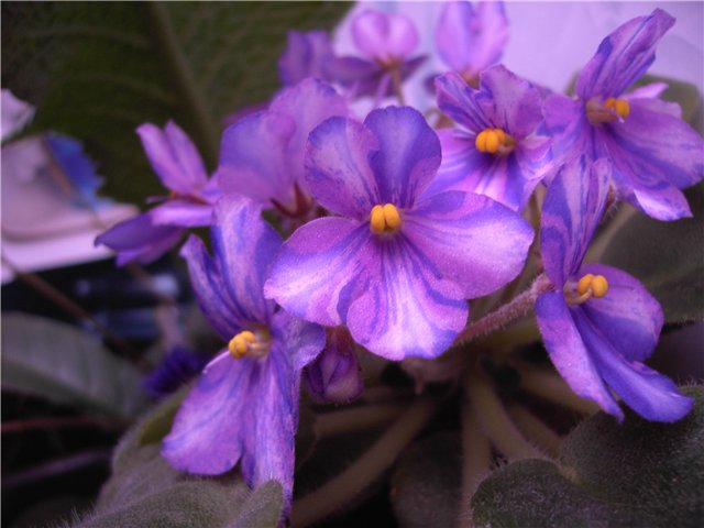 *Winner of 2nd Best in Show and Best semiminiature at 2004 National AVSA convention. An old favorite, it has fantastic single pinwheel blooms with white center stripes and red-purple side stripes speckled with blue. Medium green, lightly quilted and serrated foliage* -это от автора. Жуткая кривляка, как и положено по названию. Все цветы разные, только некоторые правильные, что обычно и наблюдается у химер с *фэттази*. Даже если не соответствует сорту, все равно веселый смешной сорт.