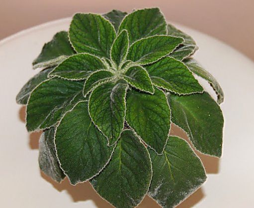 Несколько необычный вид Petrocosmea kerrii. Довольна крупная розетка, изумрудно зелёного цвета бархатные листья.