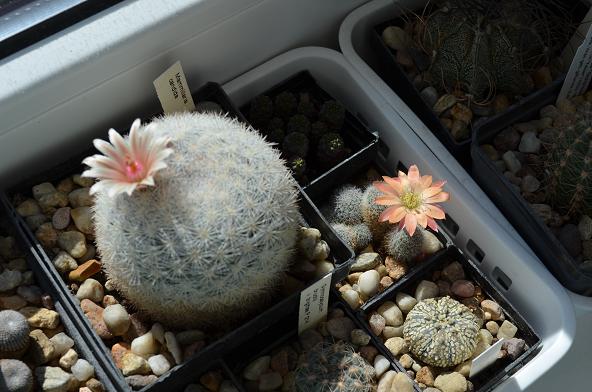 Mammilaria candida выдала два цветочка :surprise: и малышка Rebutia cv. Sunrise.