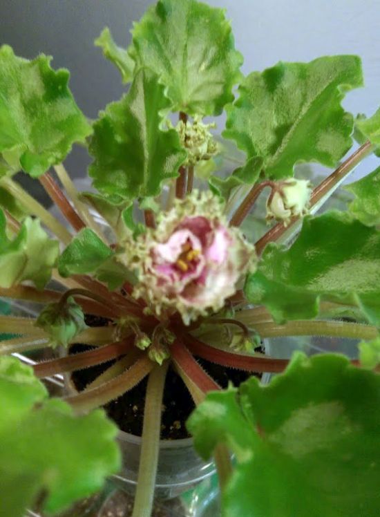 Сейчас прошел почти месяц и все розетки стоят с бутонами. У кого меньше, у кого больше. Но все будут с цветами. Некоторые уже сейчас намекают на шапочное цветение. РС-Дриада -убрала цветы у последней- уже вся в бутонах. Труженик сорт.